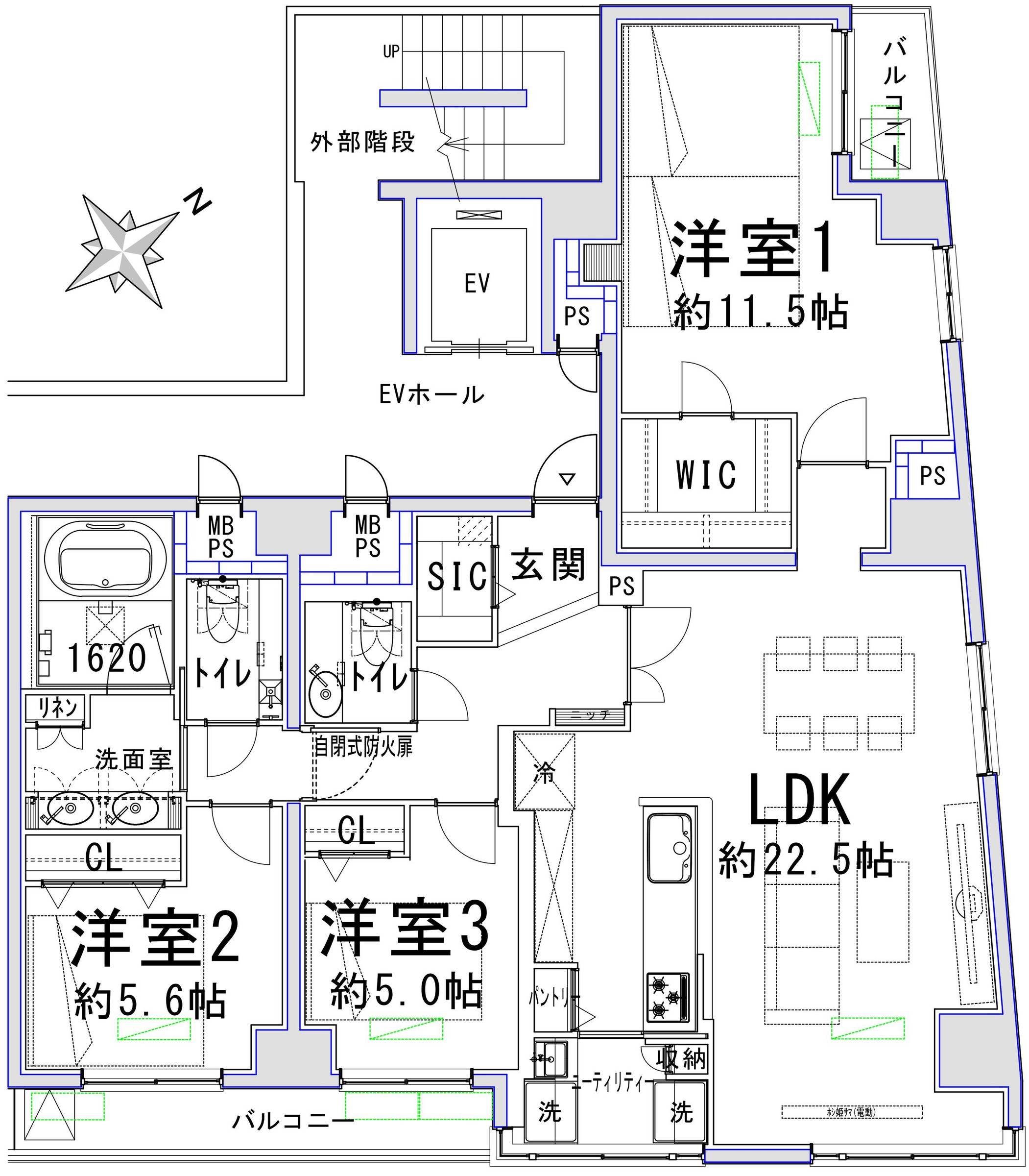 This property has an exclusive area of 109.25m2 with a balcony area of 7.46m2. The living/dining/kitchen area is approximately 40.1 m2.There is an approximately 20.9 m2 room with a walk-in closet, a 10.2 m2 room with a closet and a 9.1 m2 Western-style room, and a shoe closet in the entrance hallway. The spacious 1620-size bathroom, twin-bowl washstand, two toilets, and a utility room with a slop sink are all located in the kitchen. The utility room with a slop sink is also spacious. This is a corner unit with excellent sunlight.