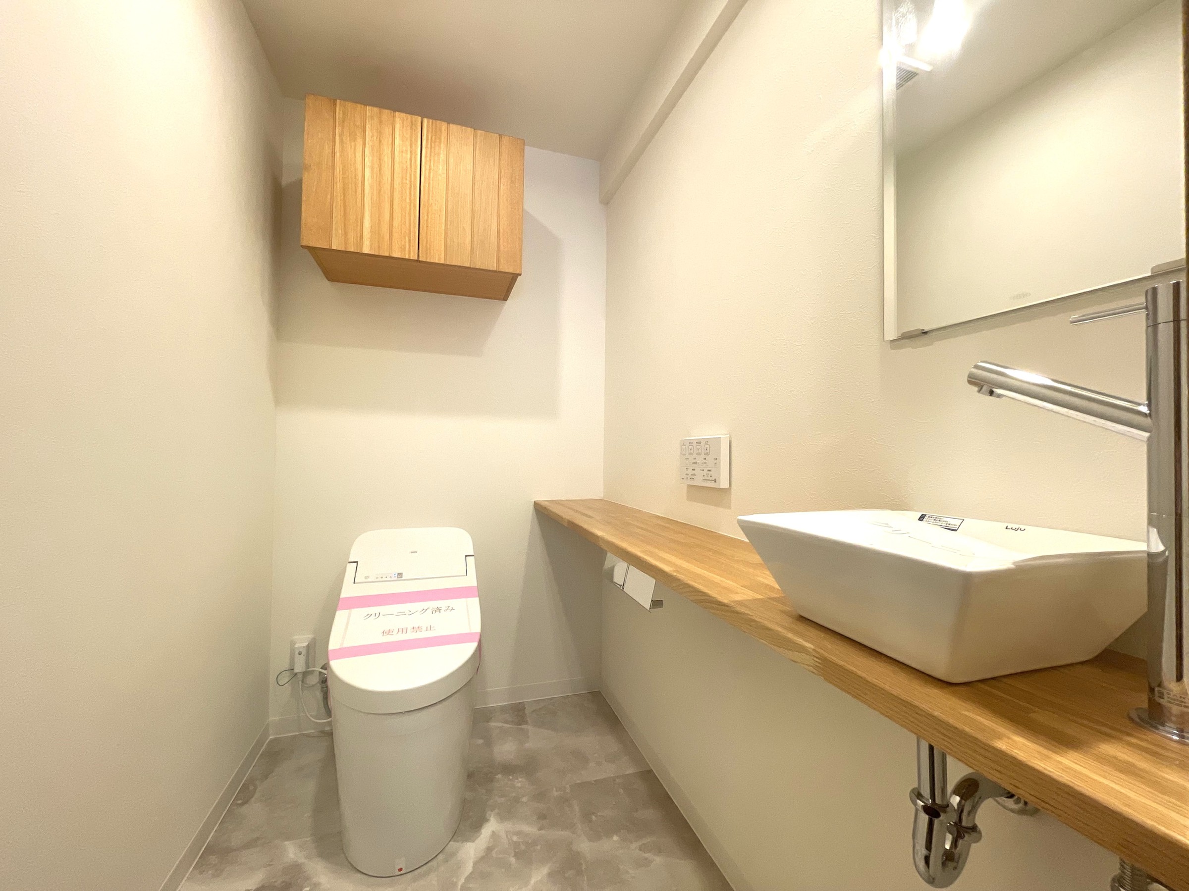 The flooring and fittings are made of natural solid wood, which is the pride of the LogMansion with its pleasant touch. All the existing interior has been dismantled and all the plumbing has been completely renewed, so it is as comfortable to live in as if it were a new building.