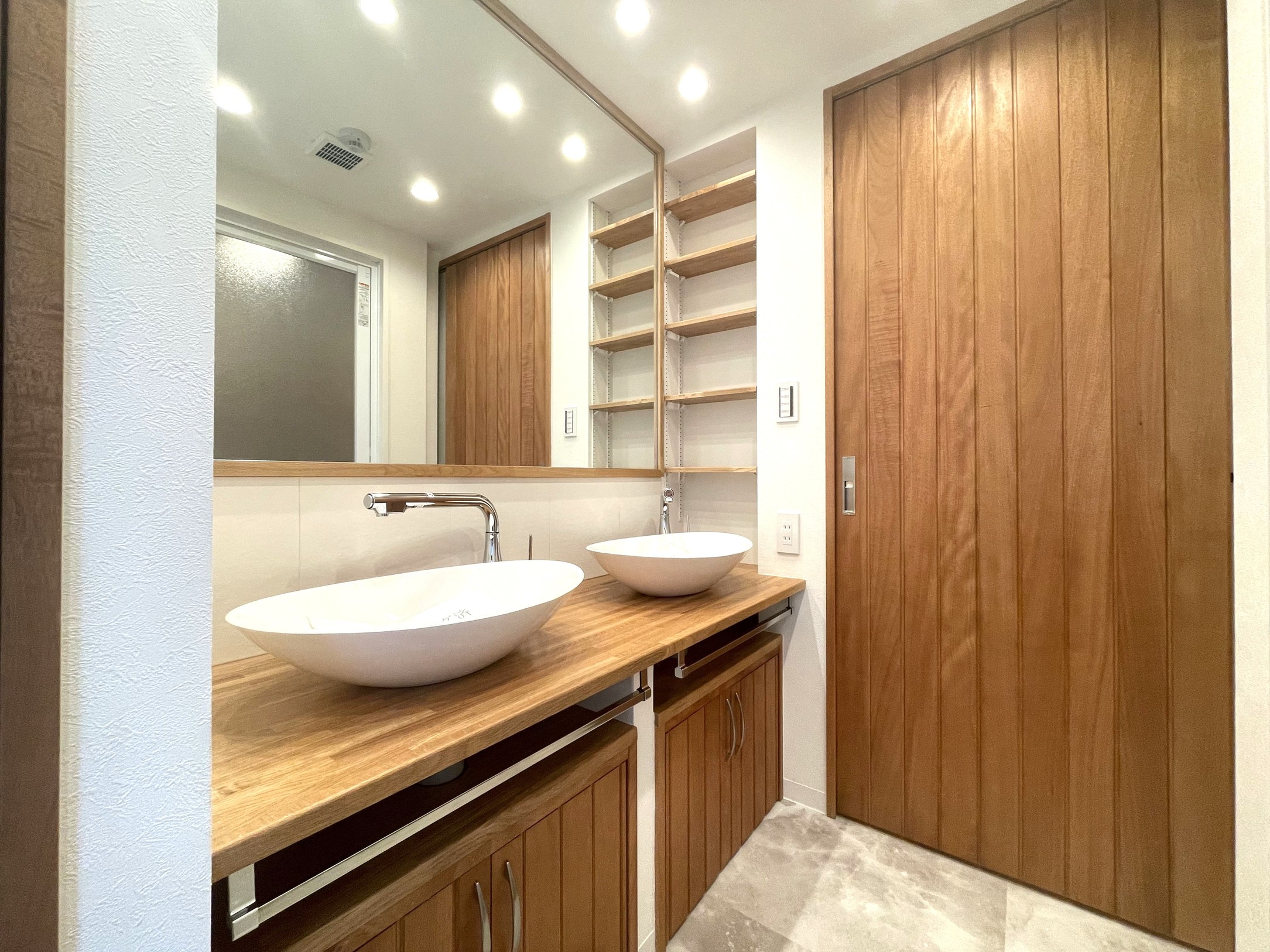The solid wood used in the interior is a natural material crafted from a single piece of timber cut from a tree. This property features a high-end design that makes extensive use of solid wood—typically found in custom-built new homes—combined with a well-thought-out, highly functional floor plan designed to complement it.