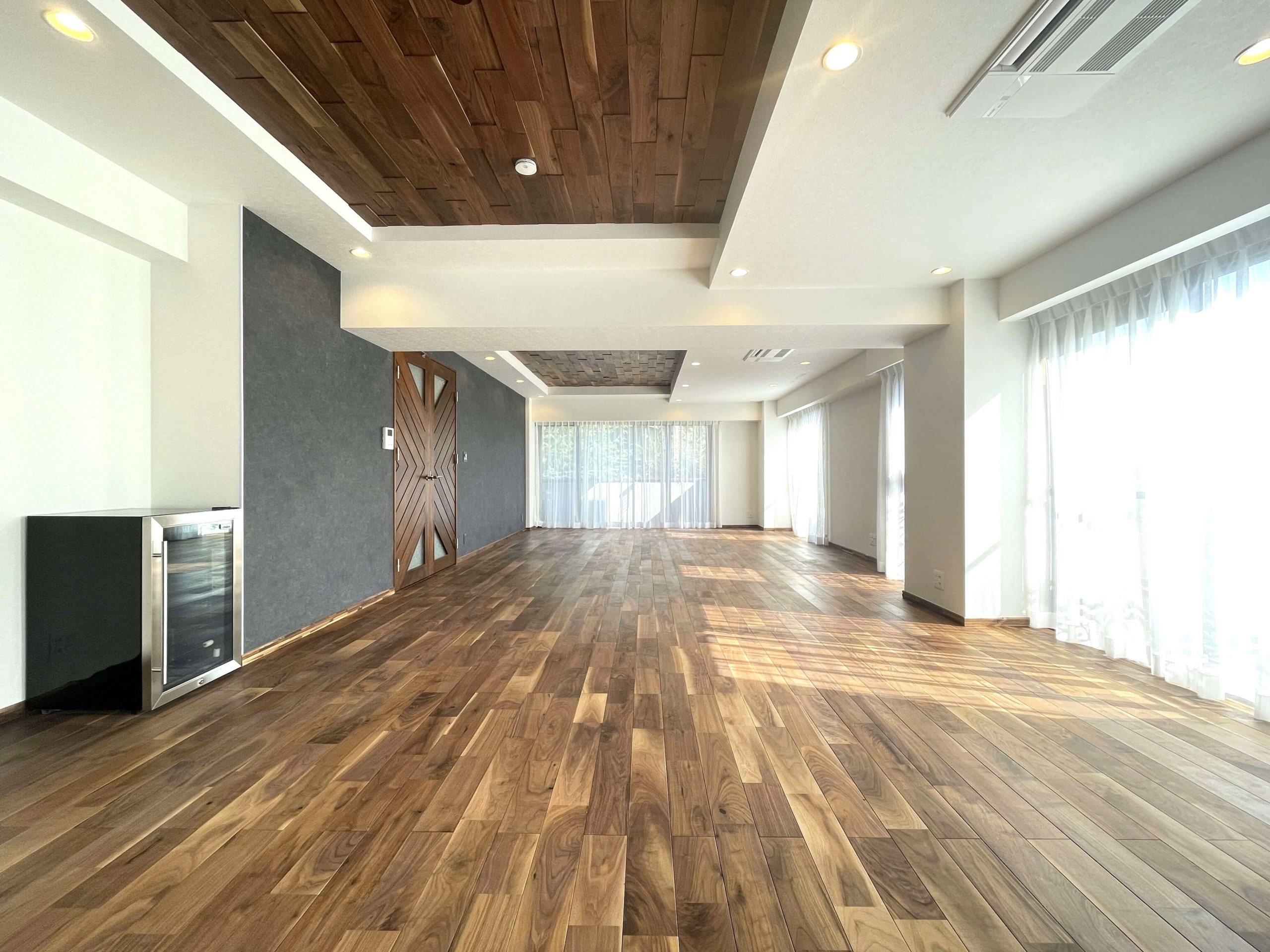 We lavishly use high-quality natural solid wood for everything from the newly constructed ceilings and walls to the floors, all fixtures, ceiling panels, and baseboards.