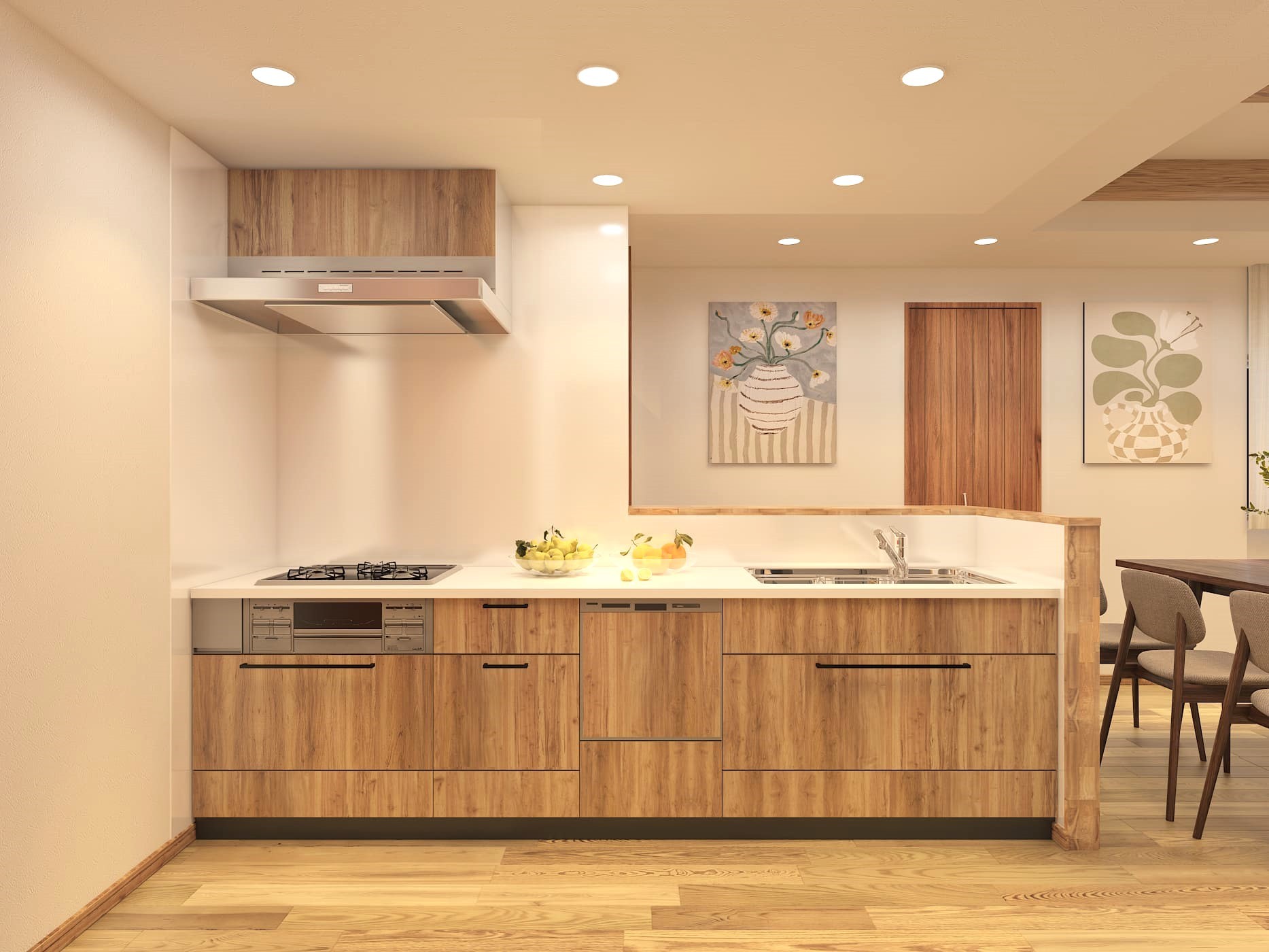 The solid wood used in the interior is a natural material crafted from a single piece of timber cut from a tree. This property features a high-end design that makes extensive use of solid wood—typically found in custom-built homes—combined with a well-thought-out, highly functional floor plan designed to complement it.